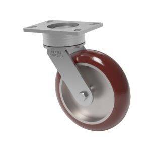 Paired with our general-purpose, Standard Polyurethane (Shore 95A Hardness) wheel, this caster becomes good for numerous industrial applications. It is non-marking with high tear strength and resistance to flat spotting, as well as a good solvent and water resistance. This wheel is capable carrying loads up to 3700 lbs. and has a 1-inch thick tread which is denoted by the H.D. in the wheel material. Featuring precision sealed ball bearings, the caster wheel provides quiet operation and requires no maintenance, all with a load rating of 1000 lbs.