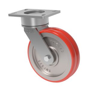 This 8-inch by 2-inch 57 series caster, is engineered for exceptional performance and reduced ergonomic forces. The legs, made from 1/4″ x 2″ steel, are continuously welded both inside and outside the yoke base, ensuring robust construction. With a 1/2″ diameter axle, this caster delivers smooth rotation and reliable operation.